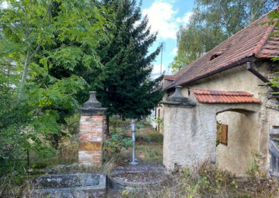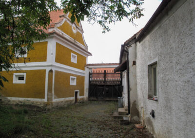 Celková výměra pozemků činí 4006 m2 a zahrnuje obytný dům, hospodářské prostory, památkově chráněnou sýpku a nezastavěný pozemek (dvůr a bývalá zahrada).